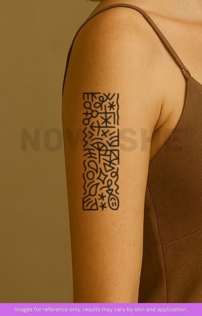 nowashe tattoos is designed for all skin tones, but the fully developed color is uniquely influenced by individual skin chemistry. The result can range from a blue/green, to a distinctive dark blue/black.