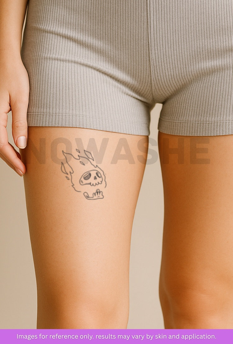 nowashe tattoos is designed for all skin tones, but the fully developed color is uniquely influenced by individual skin chemistry. The result can range from a blue/green, to a distinctive dark blue/black.