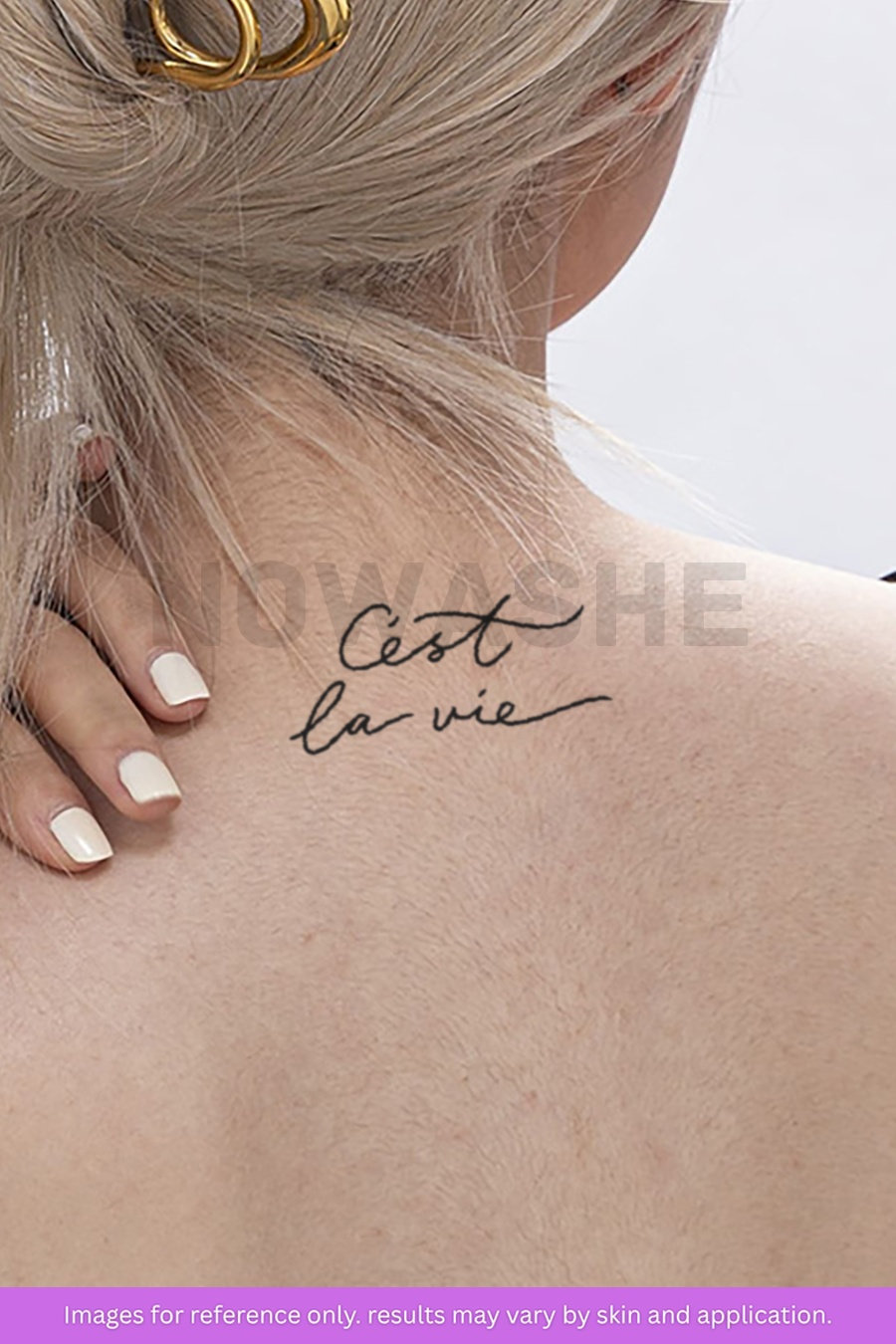 nowashe tattoos is designed for all skin tones, but the fully developed color is uniquely influenced by individual skin chemistry. The result can range from a blue/green, to a distinctive dark blue/black.