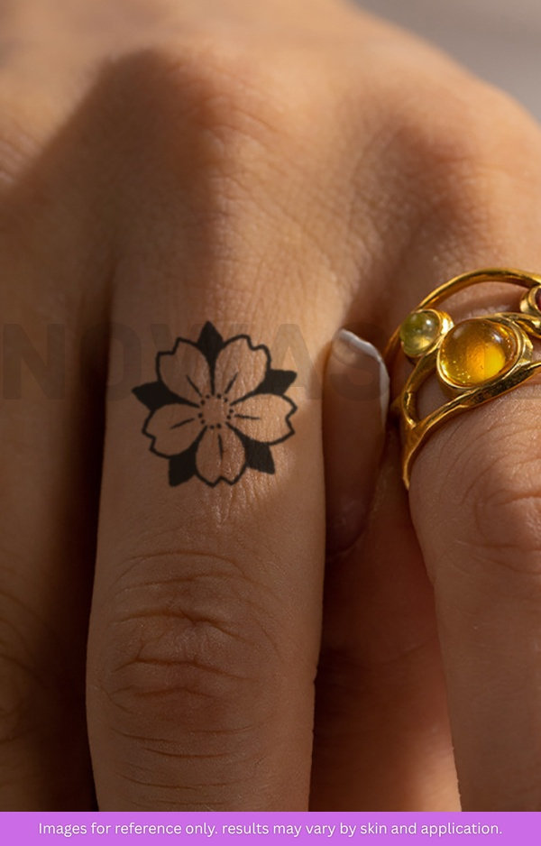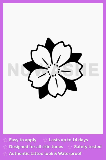Introducing nowashe Tattoos' Delicate Cherry Blossom - a water-resistant tattoo featuring intricate linework and beautiful sakura blossom petals. The perfect way to add a touch of elegance to any outfit, without the commitment of a permanent tattoo.