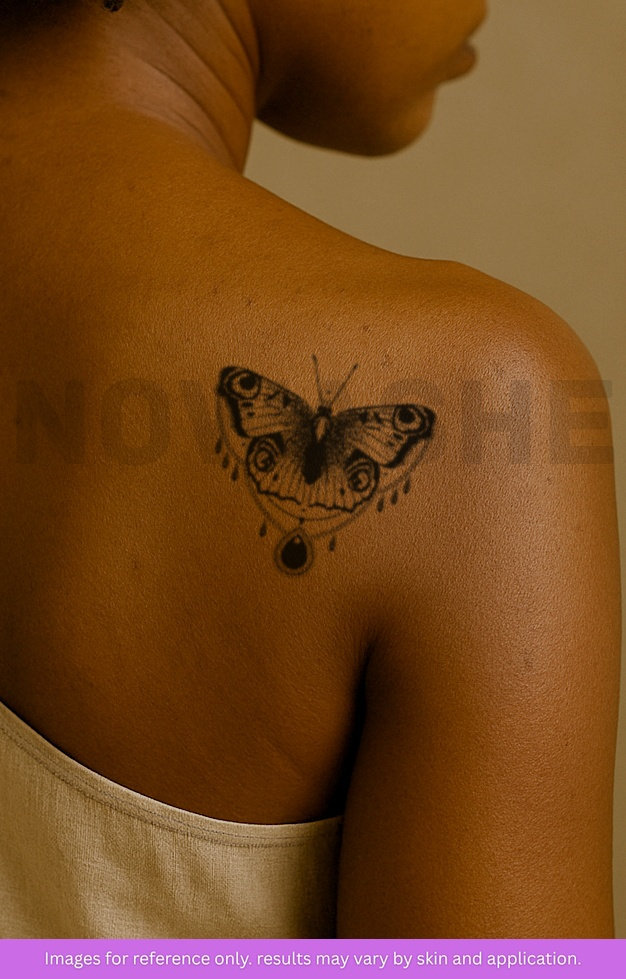 nowashe tattoos is designed for all skin tones, but the fully developed color is uniquely influenced by individual skin chemistry. The result can range from a blue/green, to a distinctive dark blue/black.