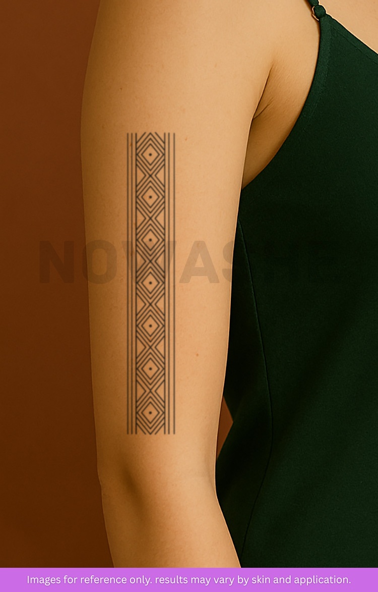 nowashe tattoos is designed for all skin tones, but the fully developed color is uniquely influenced by individual skin chemistry. The result can range from a blue/green, to a distinctive dark blue/black.