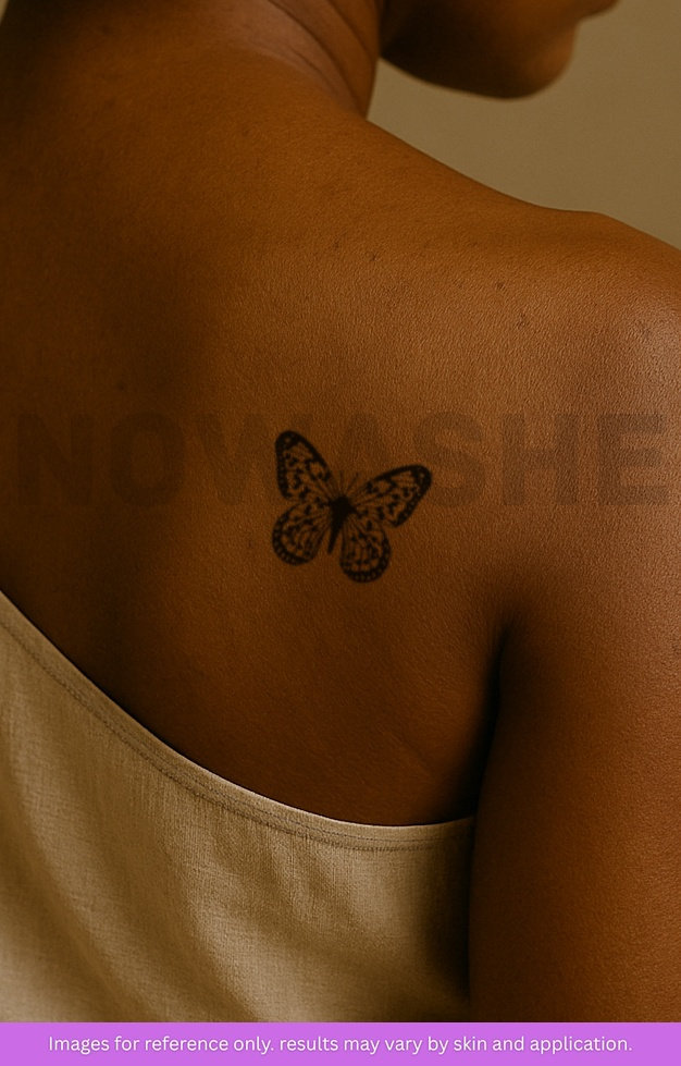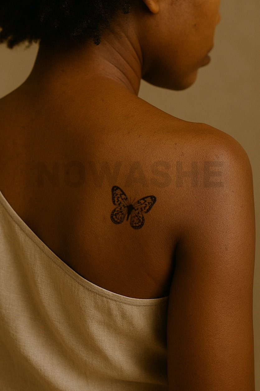 nowashe tattoos is designed for all skin tones, but the fully developed color is uniquely influenced by individual skin chemistry. The result can range from a blue/green, to a distinctive dark blue/black.