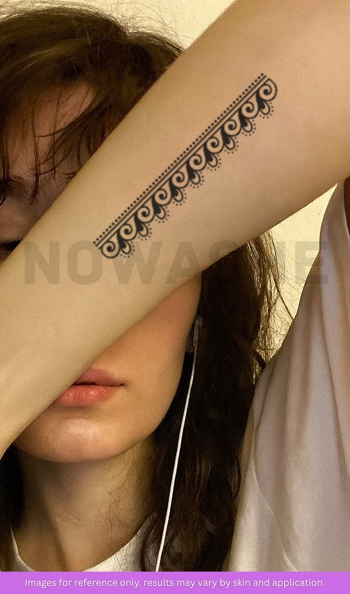 nowashe tattoos is designed for all skin tones, but the fully developed color is uniquely influenced by individual skin chemistry. The result can range from a blue/green, to a distinctive dark blue/black.
