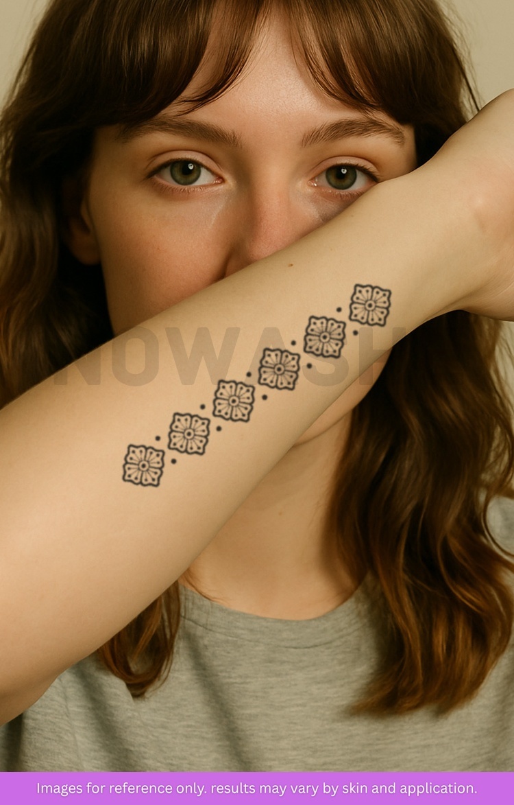 nowashe tattoos is designed for all skin tones, but the fully developed color is uniquely influenced by individual skin chemistry. The result can range from a blue/green, to a distinctive dark blue/black.
