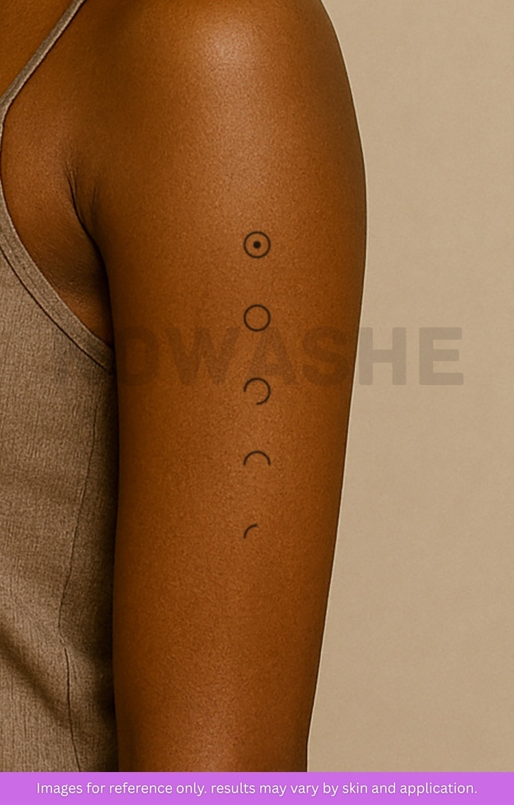 nowashe tattoos is designed for all skin tones, but the fully developed color is uniquely influenced by individual skin chemistry. The result can range from a blue/green, to a distinctive dark blue/black.