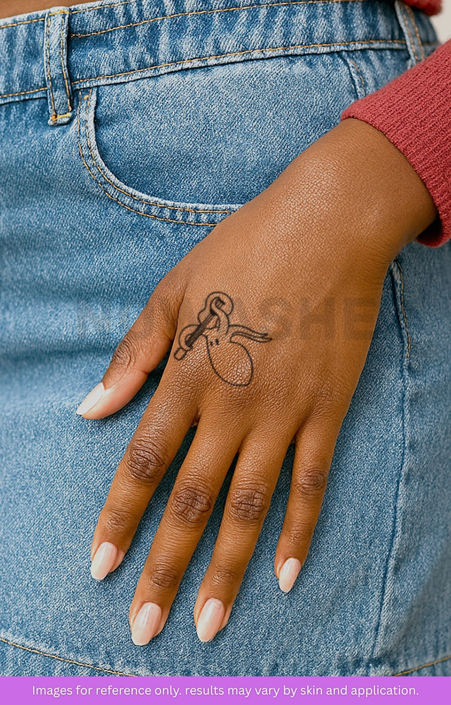 nowashe tattoos is designed for all skin tones, but the fully developed color is uniquely influenced by individual skin chemistry. The result can range from a blue/green, to a distinctive dark blue/black.