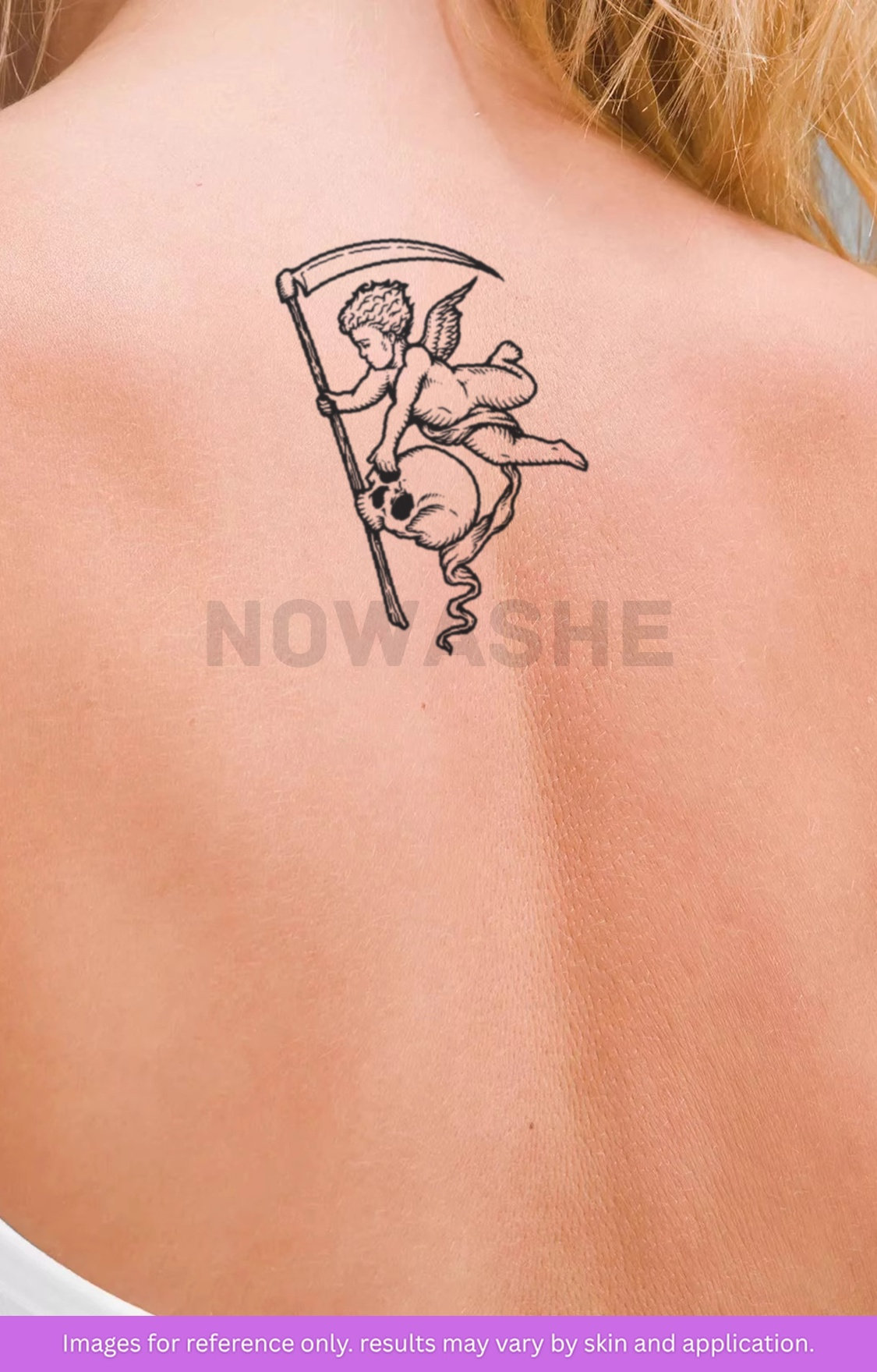 nowashe tattoos is designed for all skin tones, but the fully developed color is uniquely influenced by individual skin chemistry. The result can range from a blue/green, to a distinctive dark blue/black.
