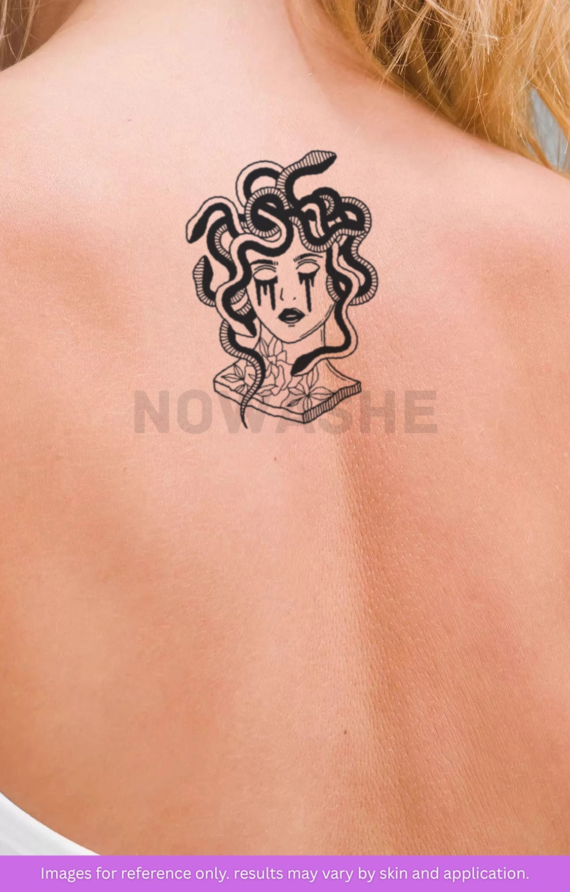 nowashe tattoos is designed for all skin tones, but the fully developed color is uniquely influenced by individual skin chemistry. The result can range from a blue/green, to a distinctive dark blue/black.