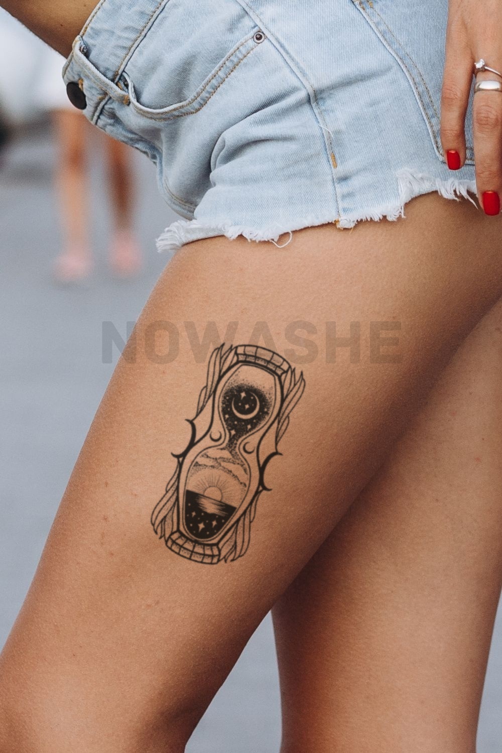 nowashe tattoos is designed for all skin tones, but the fully developed color is uniquely influenced by individual skin chemistry. The result can range from a blue/green, to a distinctive dark blue/black.