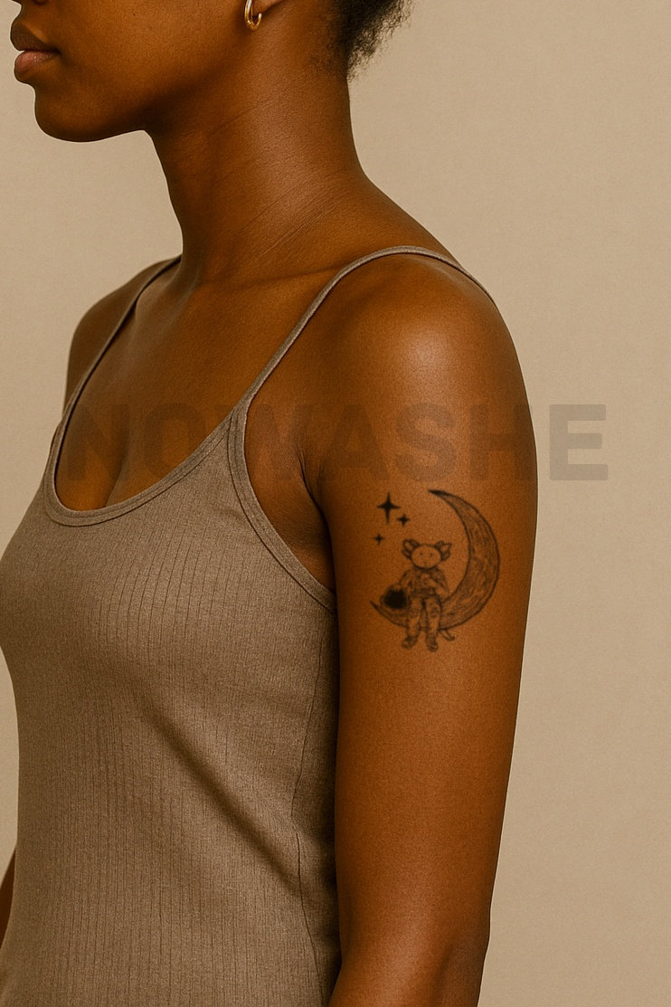 nowashe tattoos is designed for all skin tones, but the fully developed color is uniquely influenced by individual skin chemistry. The result can range from a blue/green, to a distinctive dark blue/black.