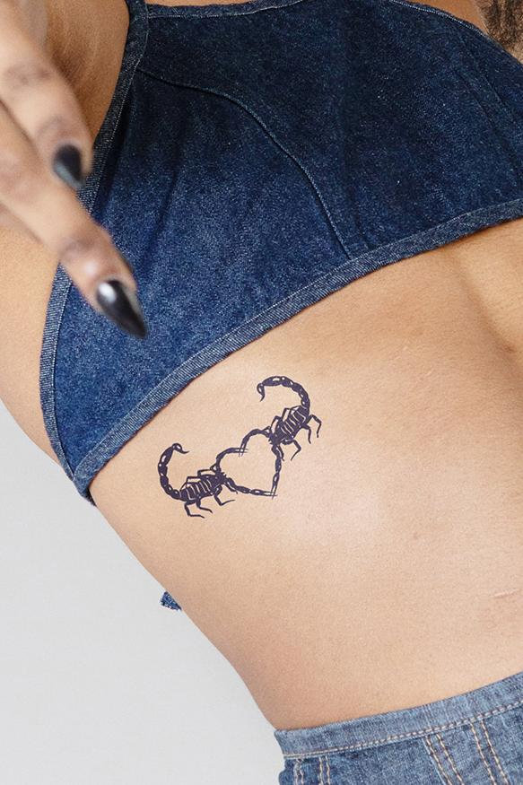 These lovestruck scorpions were designed by San Francisco-based blackwork tattoo artist, Noir Noah (AKA noir8noah).