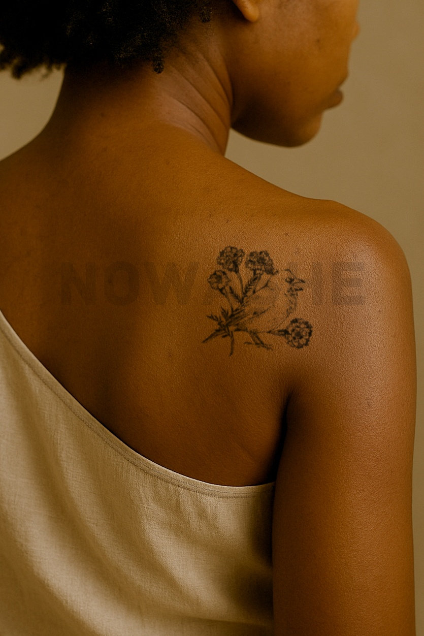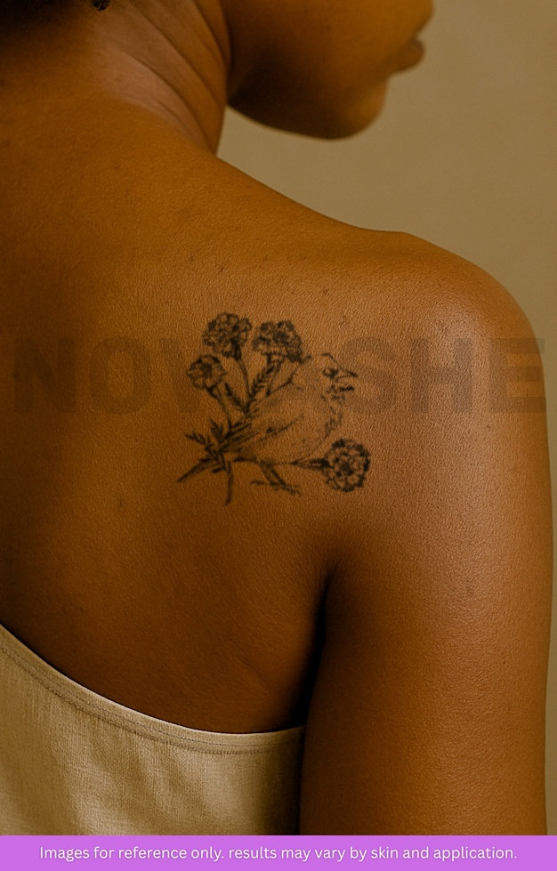 nowashe tattoos is designed for all skin tones, but the fully developed color is uniquely influenced by individual skin chemistry. The result can range from a blue/green, to a distinctive dark blue/black.
