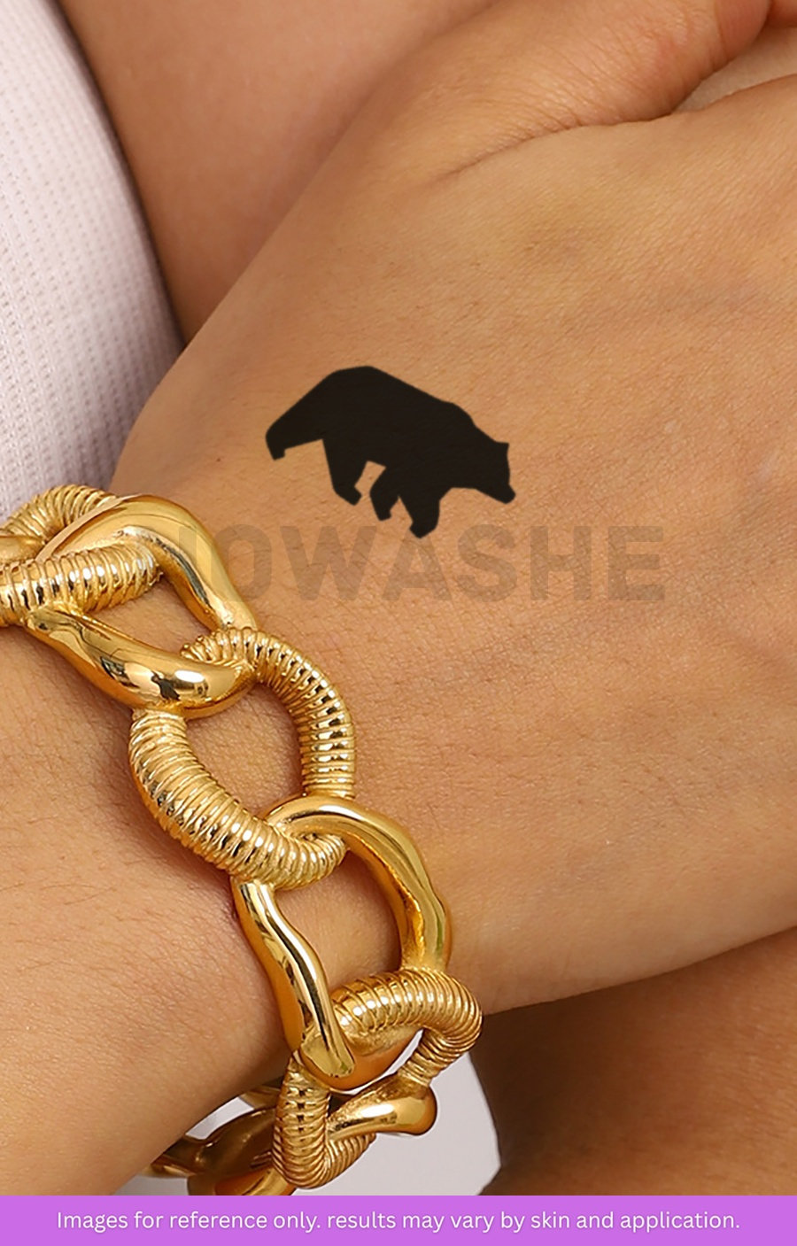 nowashe tattoos is designed for all skin tones, but the fully developed color is uniquely influenced by individual skin chemistry. The result can range from a blue/green, to a distinctive dark blue/black.