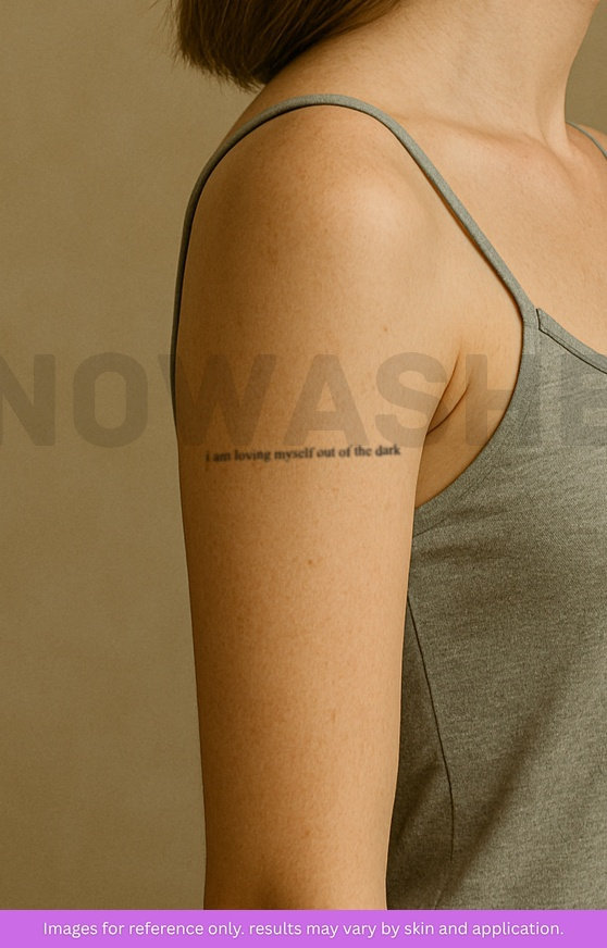 nowashe tattoos is designed for all skin tones, but the fully developed color is uniquely influenced by individual skin chemistry. The result can range from a blue/green, to a distinctive dark blue/black.