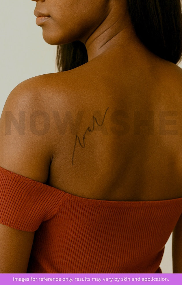 nowashe tattoos is designed for all skin tones, but the fully developed color is uniquely influenced by individual skin chemistry. The result can range from a blue/green, to a distinctive dark blue/black.