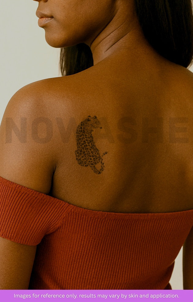 nowashe tattoos is designed for all skin tones, but the fully developed color is uniquely influenced by individual skin chemistry. The result can range from a blue/green, to a distinctive dark blue/black.
