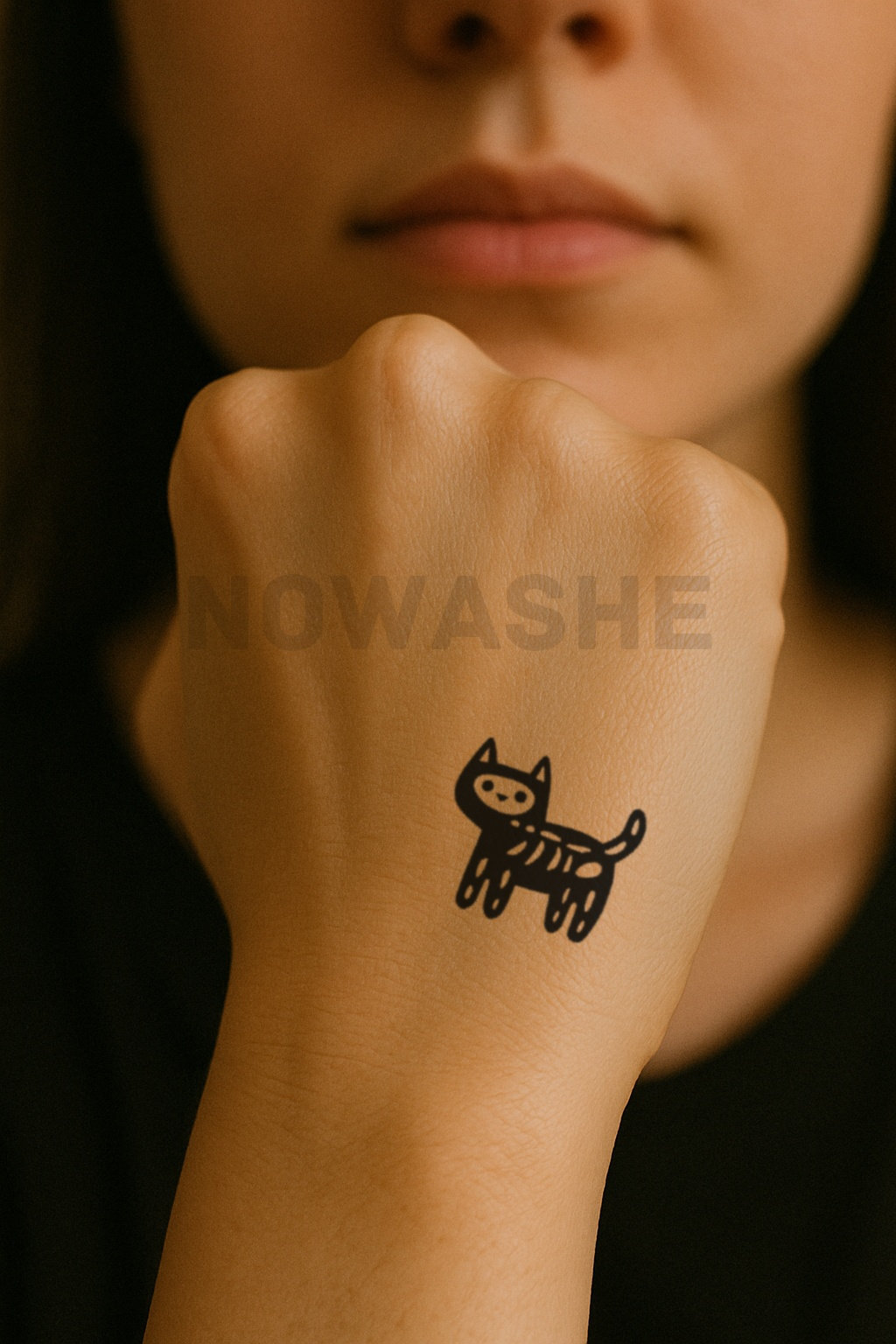 nowashe tattoos is designed for all skin tones, but the fully developed color is uniquely influenced by individual skin chemistry. The result can range from a blue/green, to a distinctive dark blue/black.