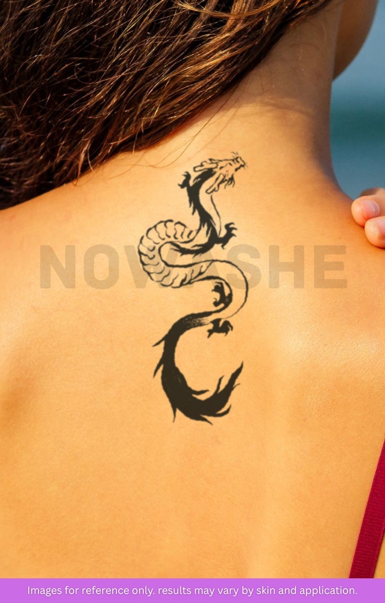 nowashe tattoos is designed for all skin tones, but the fully developed color is uniquely influenced by individual skin chemistry. The result can range from a blue/green, to a distinctive dark blue/black.
