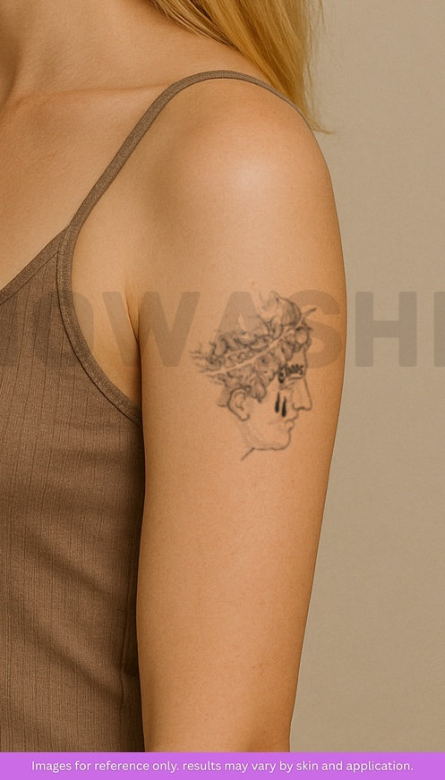 nowashe tattoos is designed for all skin tones, but the fully developed color is uniquely influenced by individual skin chemistry. The result can range from a blue/green, to a distinctive dark blue/black.
