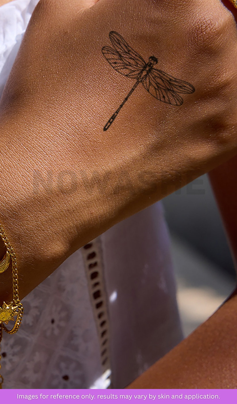nowashe tattoos is designed for all skin tones, but the fully developed color is uniquely influenced by individual skin chemistry. The result can range from a blue/green, to a distinctive dark blue/black.