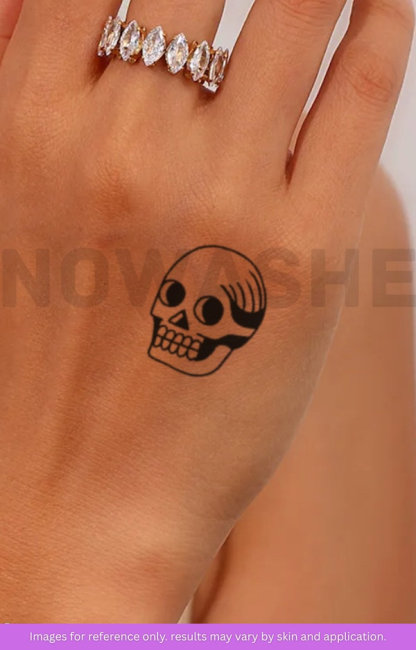 nowashe tattoos is designed for all skin tones, but the fully developed color is uniquely influenced by individual skin chemistry. The result can range from a blue/green, to a distinctive dark blue/black.