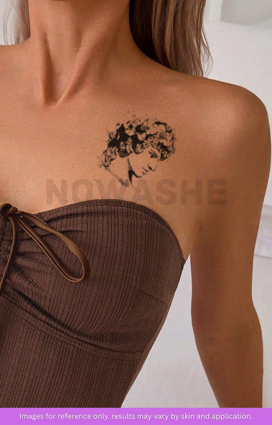 nowashe tattoos is designed for all skin tones, but the fully developed color is uniquely influenced by individual skin chemistry. The result can range from a blue/green, to a distinctive dark blue/black.
