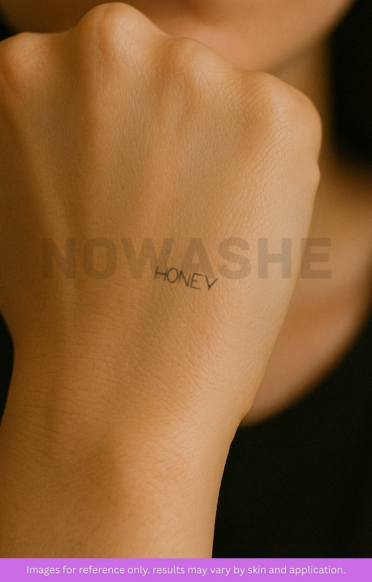 nowashe tattoos is designed for all skin tones, but the fully developed color is uniquely influenced by individual skin chemistry. The result can range from a blue/green, to a distinctive dark blue/black.