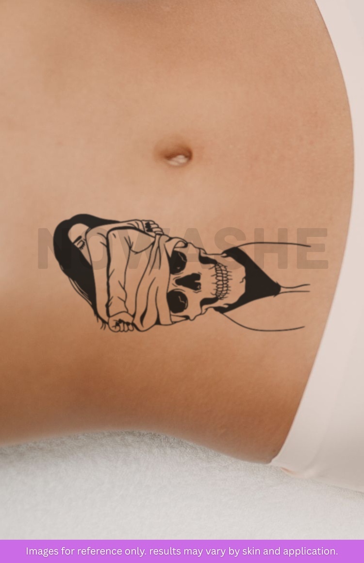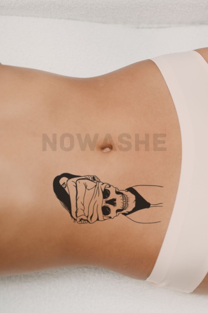 nowashe tattoos is designed for all skin tones, but the fully developed color is uniquely influenced by individual skin chemistry. The result can range from a blue/green, to a distinctive dark blue/black.