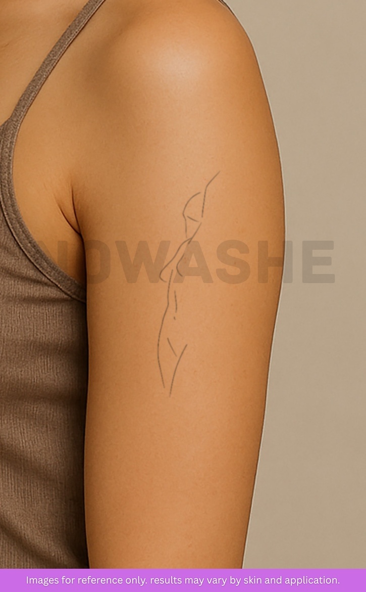 nowashe tattoos is designed for all skin tones, but the fully developed color is uniquely influenced by individual skin chemistry. The result can range from a blue/green, to a distinctive dark blue/black.
