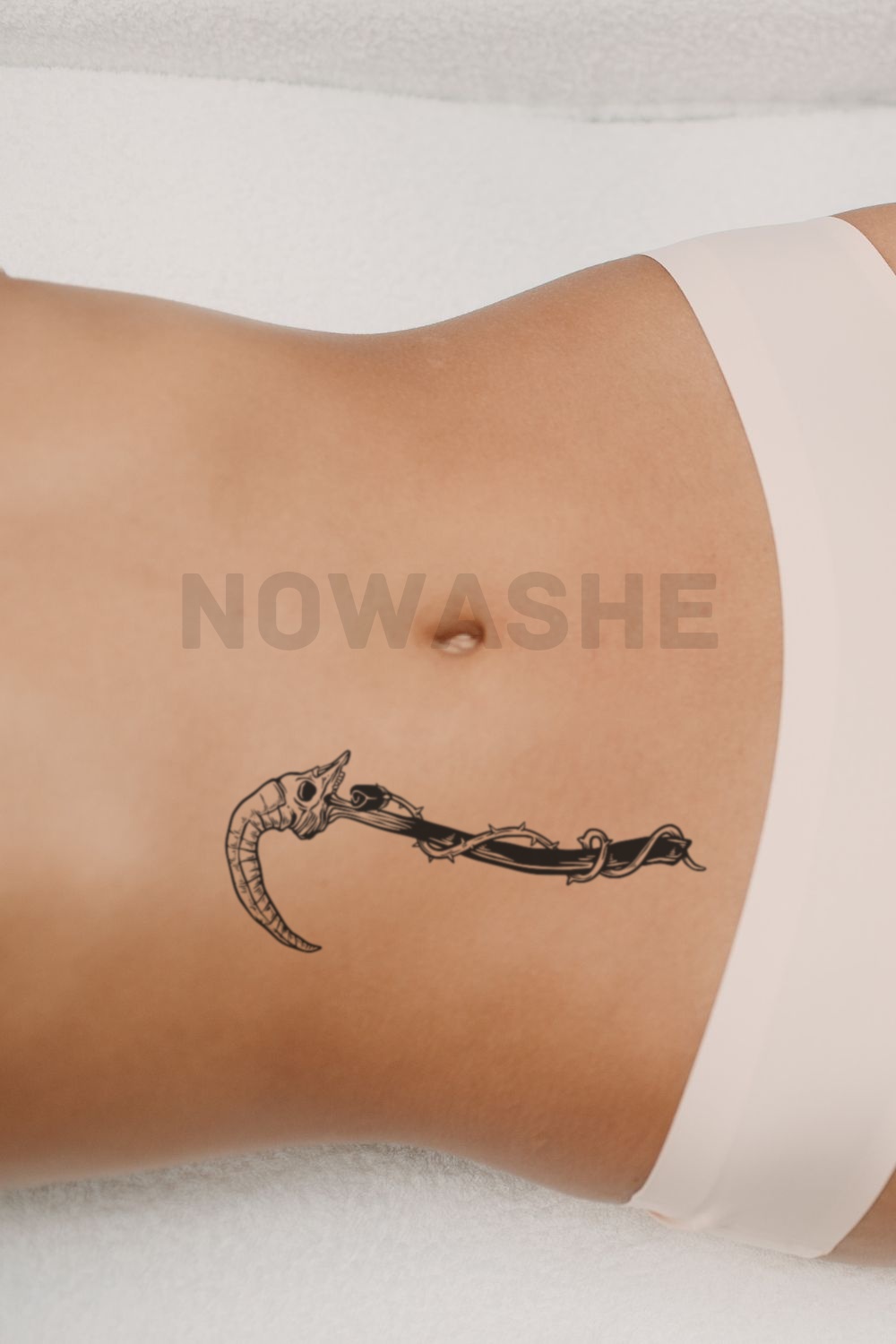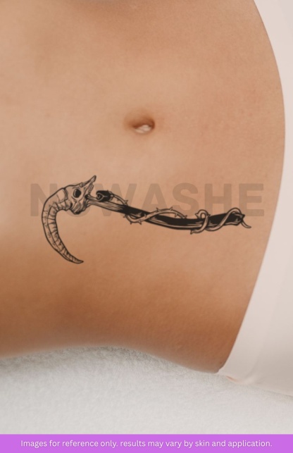 nowashe tattoos is designed for all skin tones, but the fully developed color is uniquely influenced by individual skin chemistry. The result can range from a blue/green, to a distinctive dark blue/black.