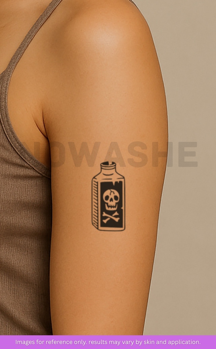 nowashe tattoos is designed for all skin tones, but the fully developed color is uniquely influenced by individual skin chemistry. The result can range from a blue/green, to a distinctive dark blue/black.