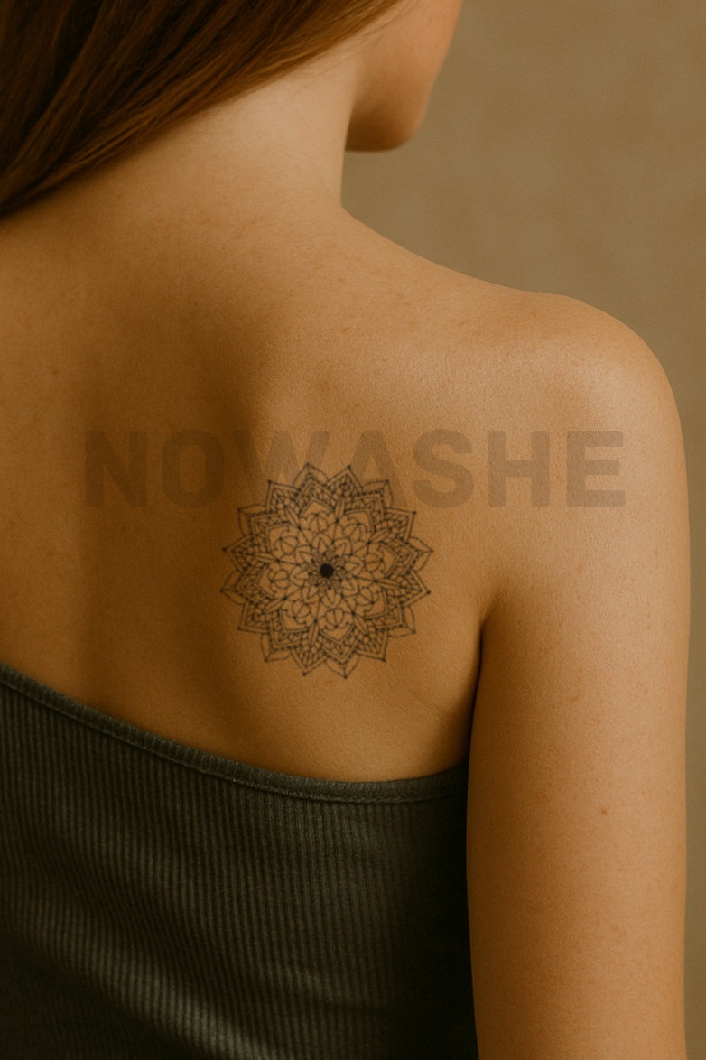 nowashe tattoos is designed for all skin tones, but the fully developed color is uniquely influenced by individual skin chemistry. The result can range from a blue/green, to a distinctive dark blue/black.