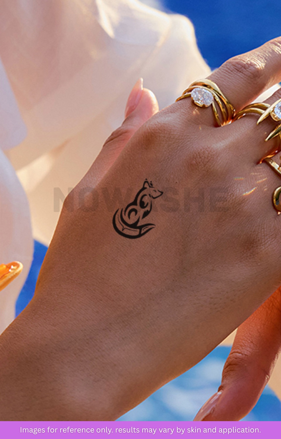 nowashe tattoos is designed for all skin tones, but the fully developed color is uniquely influenced by individual skin chemistry. The result can range from a blue/green, to a distinctive dark blue/black.