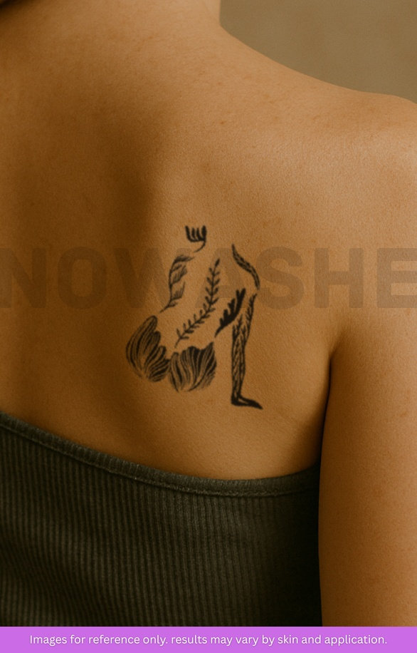 nowashe tattoos is designed for all skin tones, but the fully developed color is uniquely influenced by individual skin chemistry. The result can range from a blue/green, to a distinctive dark blue/black.