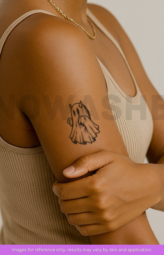 nowashe tattoos is designed for all skin tones, but the fully developed color is uniquely influenced by individual skin chemistry. The result can range from a blue/green, to a distinctive dark blue/black.
