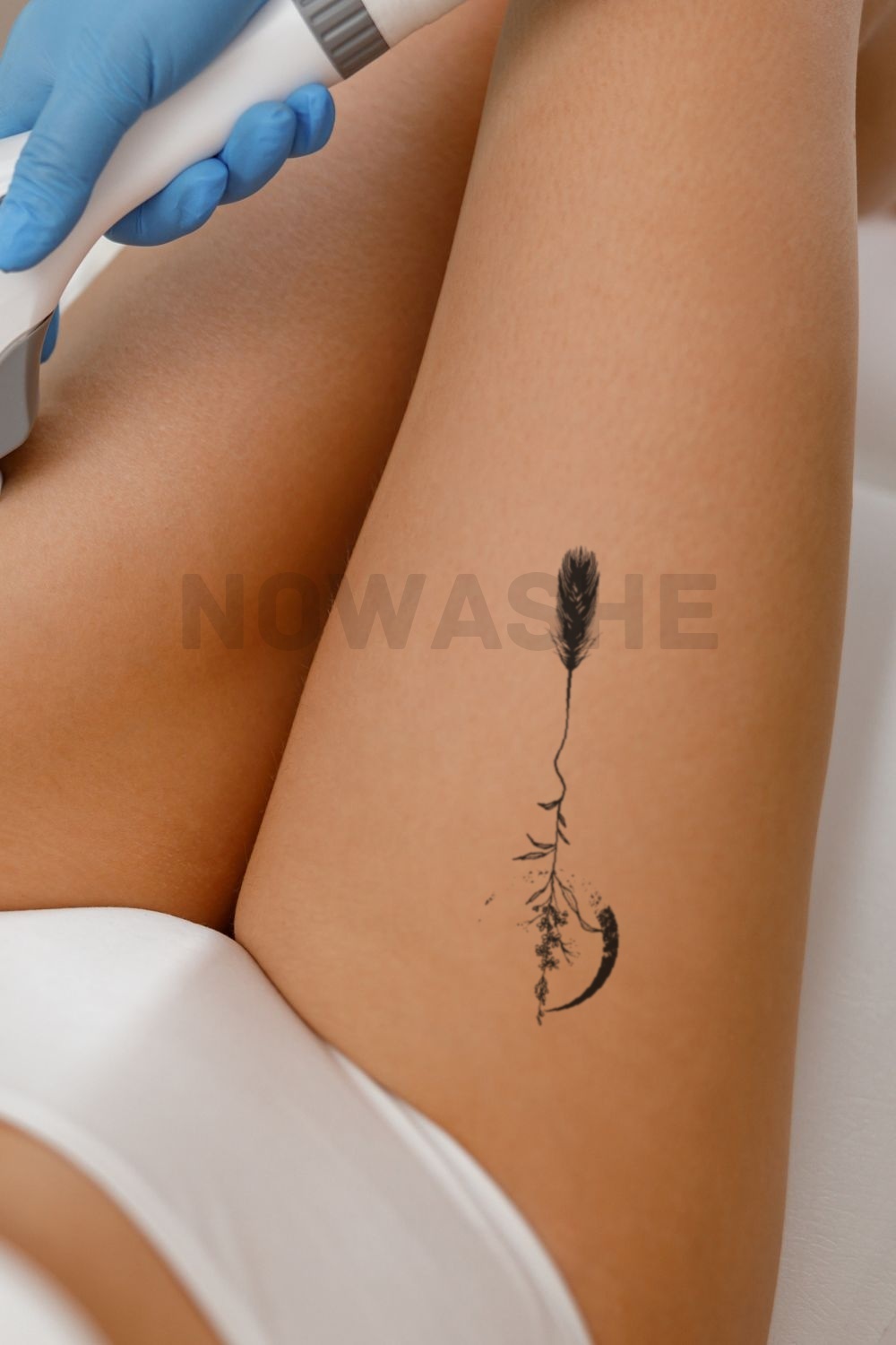 nowashe tattoos is designed for all skin tones, but the fully developed color is uniquely influenced by individual skin chemistry. The result can range from a blue/green, to a distinctive dark blue/black.