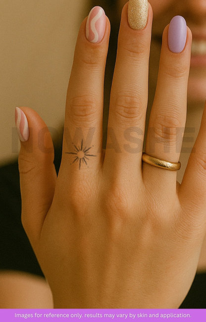 nowashe tattoos is designed for all skin tones, but the fully developed color is uniquely influenced by individual skin chemistry. The result can range from a blue/green, to a distinctive dark blue/black.