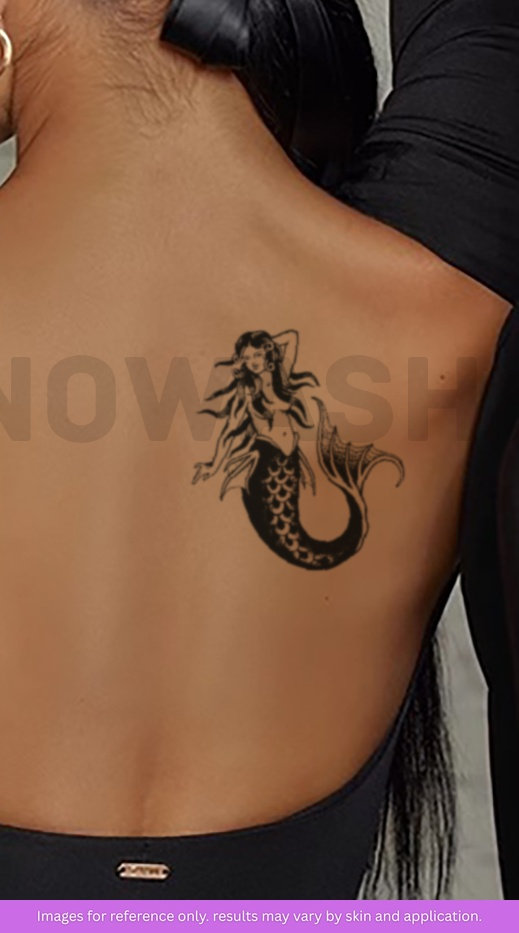 nowashe tattoos is designed for all skin tones, but the fully developed color is uniquely influenced by individual skin chemistry. The result can range from a blue/green, to a distinctive dark blue/black.