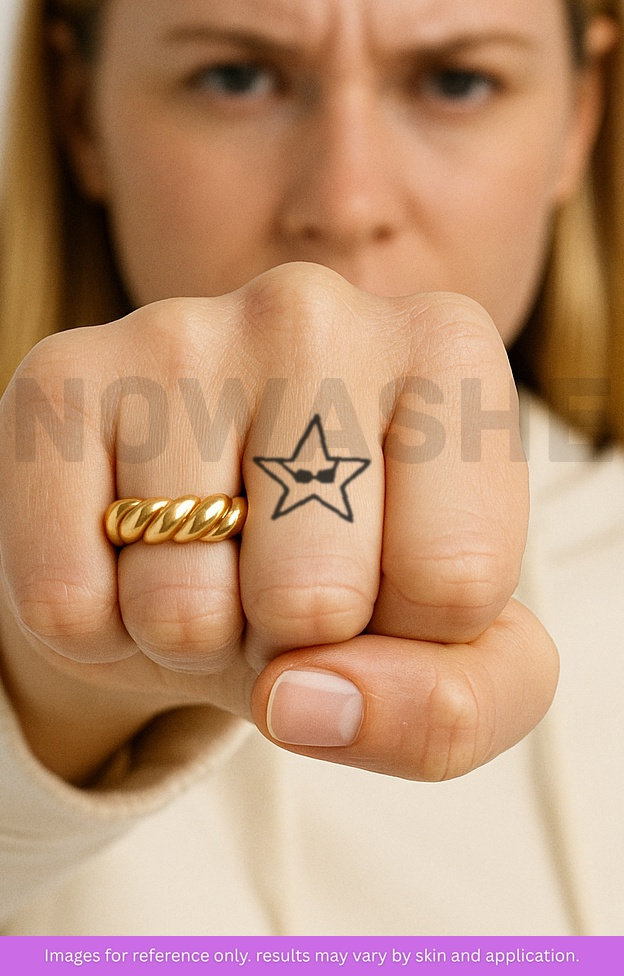 nowashe tattoos is designed for all skin tones, but the fully developed color is uniquely influenced by individual skin chemistry. The result can range from a blue/green, to a distinctive dark blue/black.