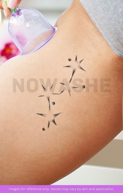 nowashe tattoos is designed for all skin tones, but the fully developed color is uniquely influenced by individual skin chemistry. The result can range from a blue/green, to a distinctive dark blue/black.