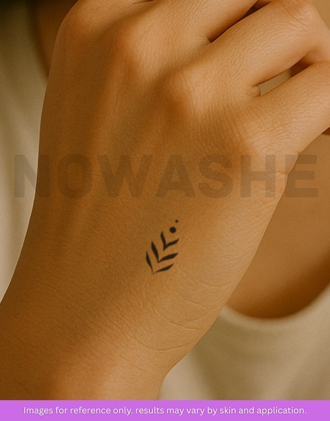 nowashe tattoos is designed for all skin tones, but the fully developed color is uniquely influenced by individual skin chemistry. The result can range from a blue/green, to a distinctive dark blue/black.