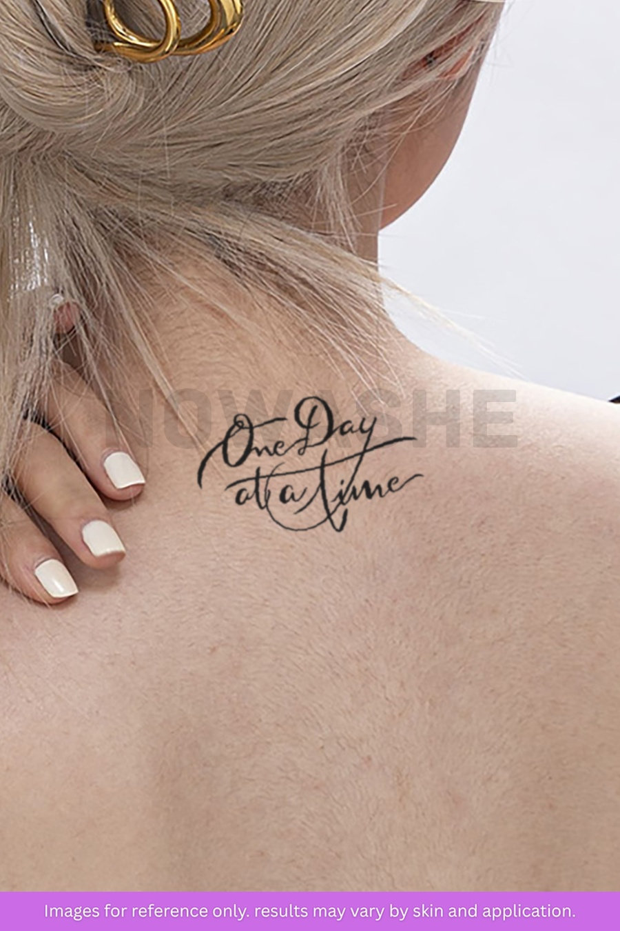 nowashe tattoos is designed for all skin tones, but the fully developed color is uniquely influenced by individual skin chemistry. The result can range from a blue/green, to a distinctive dark blue/black.