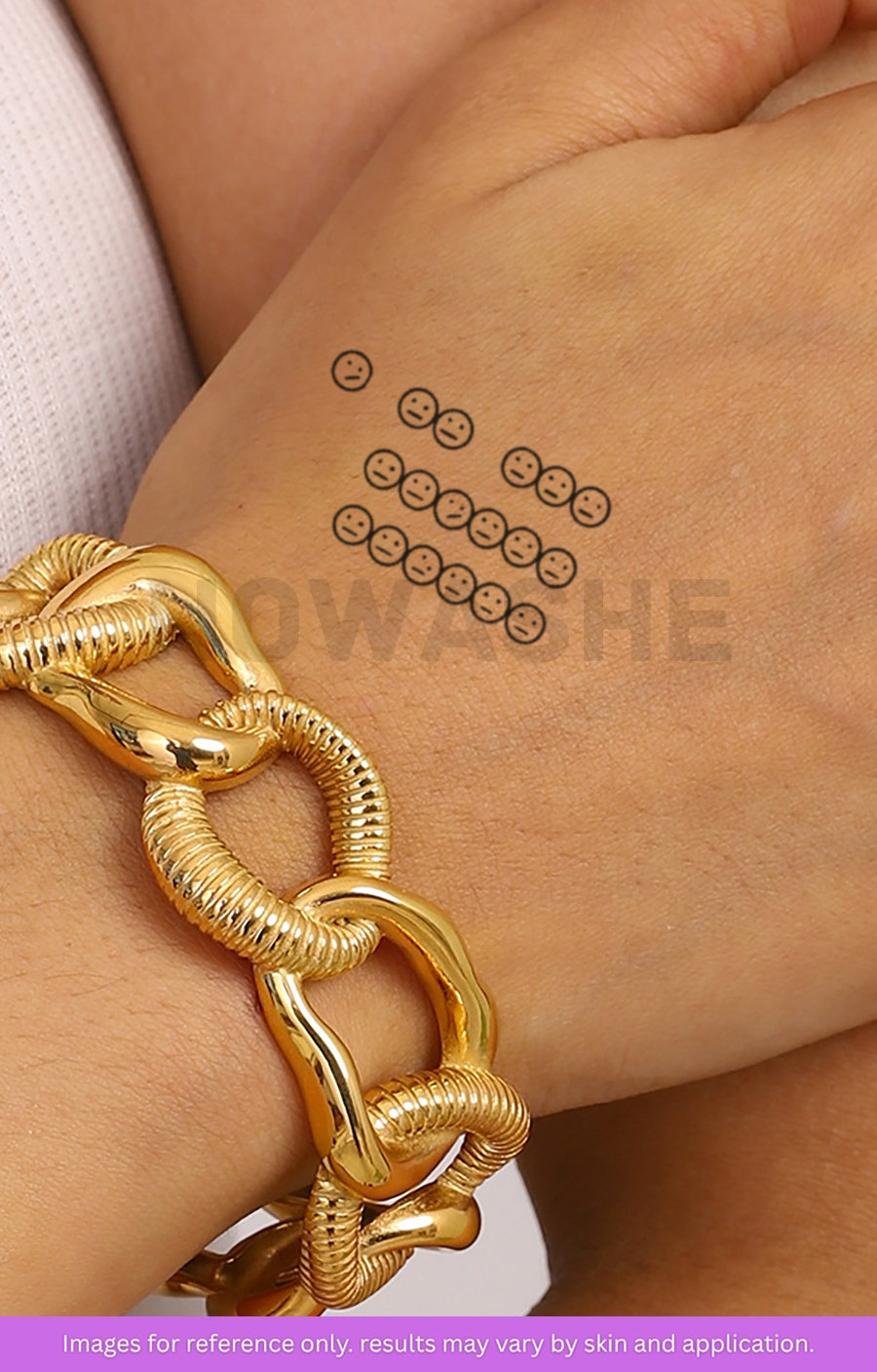 nowashe tattoos is designed for all skin tones, but the fully developed color is uniquely influenced by individual skin chemistry. The result can range from a blue/green, to a distinctive dark blue/black.